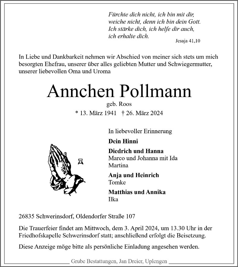 geboren am 13. März 1941 in Schwerinsdorf, jetzt Hesel