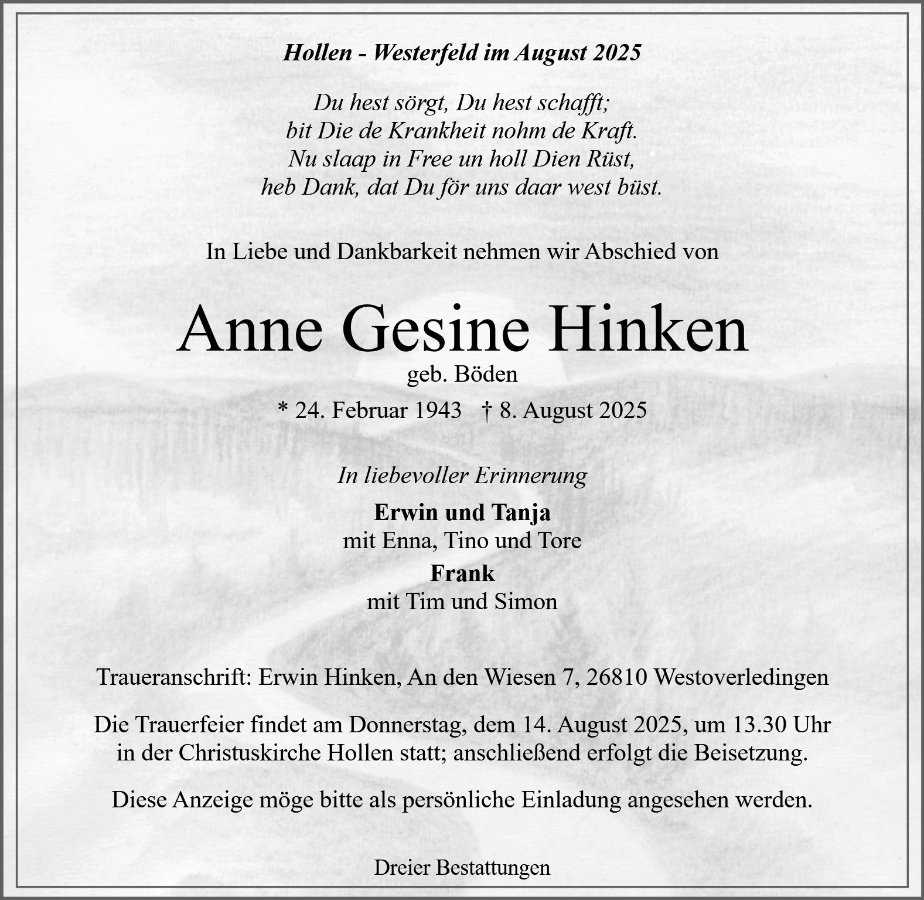 geboren am 24. Februar 1943 in Großoldendorf, jetzt Uplengen