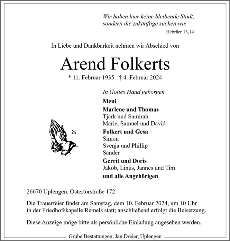 Liebe Familie Folkerts,