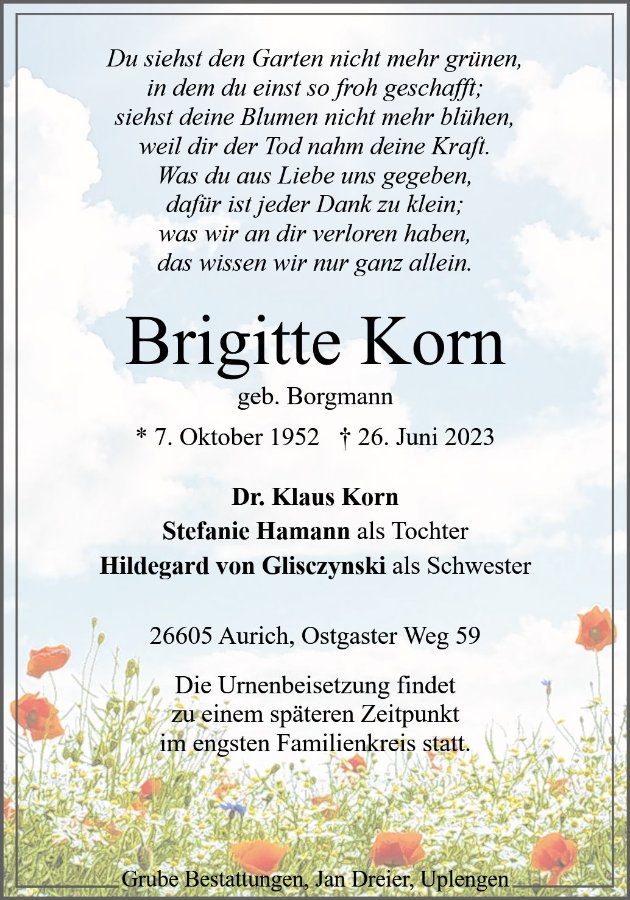 in diesen Tagen fühlen wir mit Ihnen und wünschen Ihnen von Herzen, dass Sie aus den glücklichen Erinnerungen Kraft schöpfen, um positiv in die Zukunft zu gehen. Diese Gedenkseite möge Ihnen dabei helfen, Ihre Trauer zu teilen und das Andenken gemeinsam wachzuhalten.