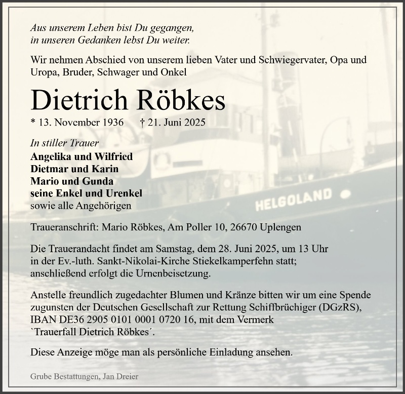 Du bist jetzt auf Deine letzte Reise gegangen und bei Deiner Frau und unserer Mutter. Dem Leben sind Grenzen gesetzt,