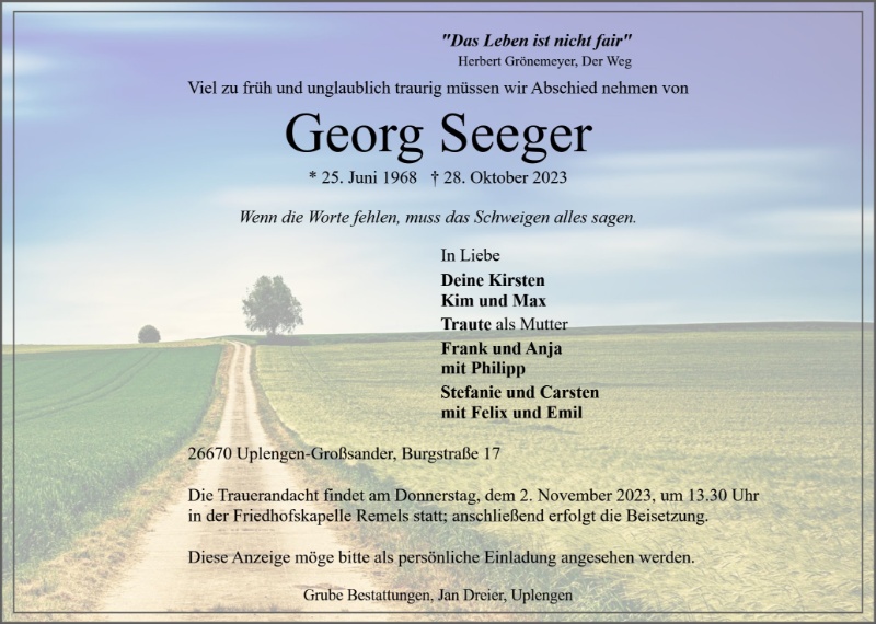 Liebe Familie Seeger ich wünsche euch ganz viel Kraft in den schweren Tagen und spreche euch mein tiefstes Beileid aus