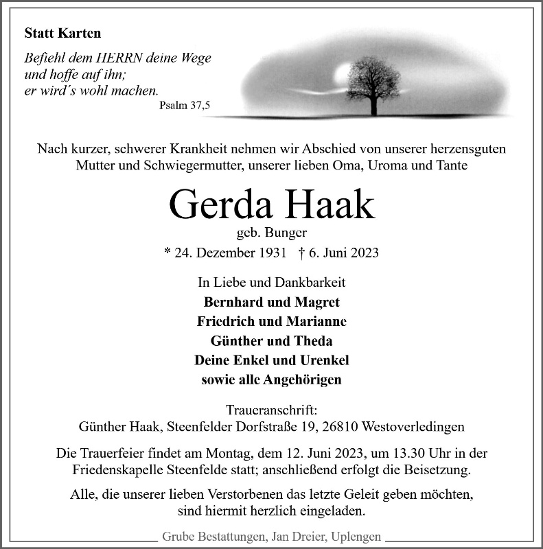 geboren am 24. Dezember 1931 in Völlen,jetzt Westoverledingen