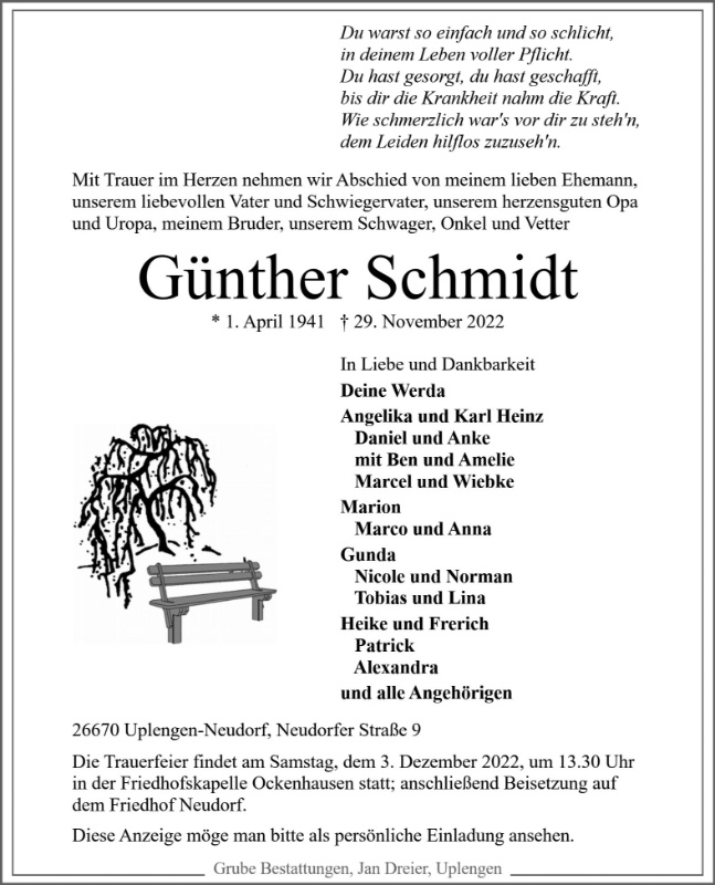 gestorben am 29. November 2022 in Uplengen-Neudorf