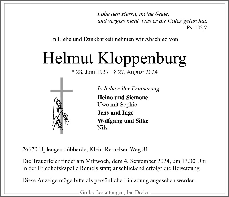 Trauerfeier, Friedhofskapelle Remels