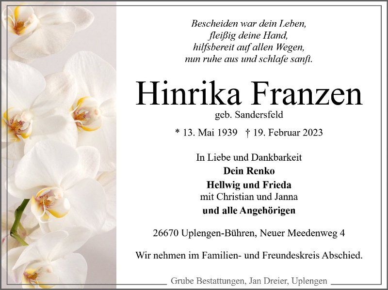 Hinrika Franzen geb. Sandersfeld