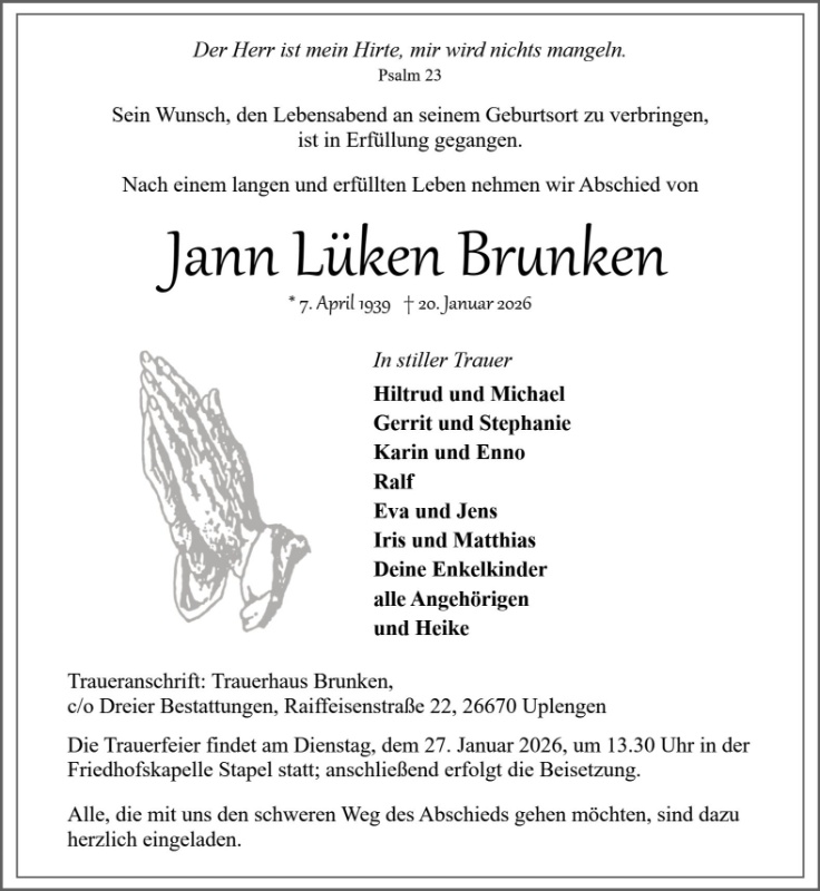 geboren am 7. April 1939 in Stapelermoor, jetzt Uplengen