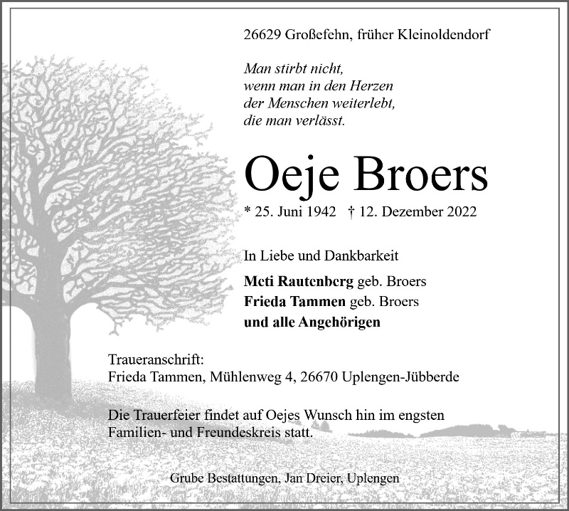 geboren am 25. Juni 1942 in Kleinoldendorf, jetzt Uplengen