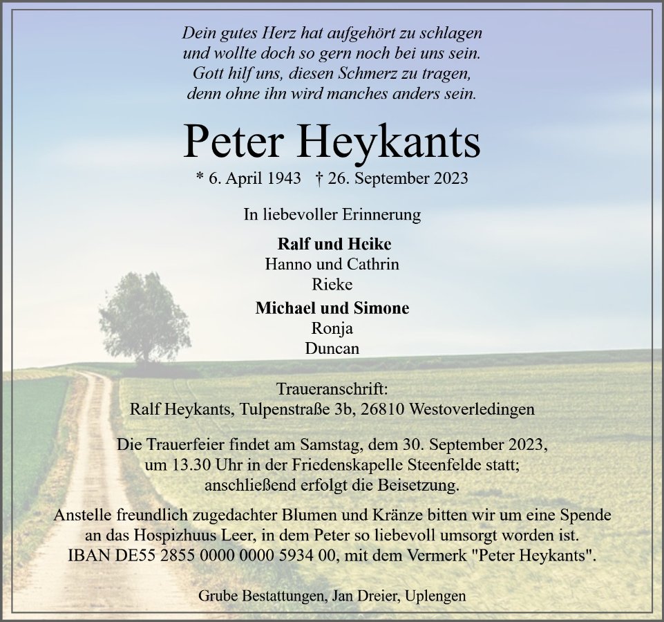 geboren am 6. April 1943 in Großoldendorf, jetzt Uplengen