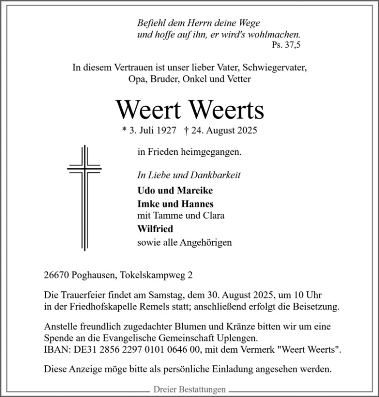 geboren am 3. Juli 1927 in Poghausen, jetzt Uplengen